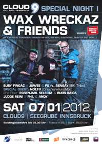 SATURDAY NIGHT SPECIAL: WAX WRECKAZ & FRIENDS 07. Jänner 2011 – CLOUD9 Iglu Bar Innsbruck 20.00 – 3.00 Uhr