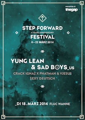 STEP FORWARD X YUNG LEAN & SAD BOYS (SE) --> for more details check the FB-Event: https://www.facebook.com/events/1458579781029067