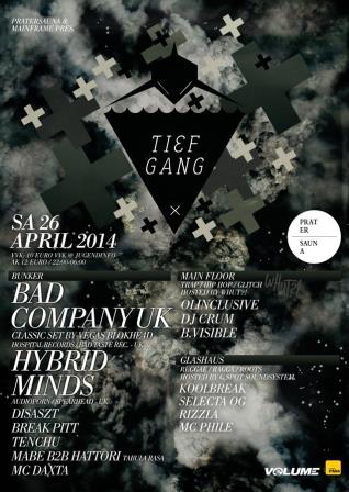 Pratersauna & Mainframe pres. TIEFGANG feat. BAD COMPANY UK – Classic Set by VEGAS/ BLOKHE4D (Hospital/ Bad Taste Rec. – UK) HYBRID MINDS (Audioporn/ Spearhead – UK)