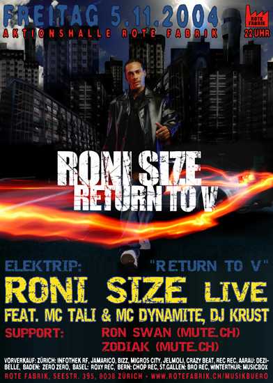 added by TaZ | | 05.11. | Roni Size | Rote Fabrik, Aktionshalle, Zürich / CH |