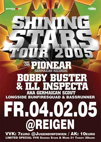 und zwar steht mit der compilation SHINING STARS II im Januar der nächste grosse GERMAICAN RECORDS release an. dieser featured all die GERMAICAN hits des letzten Jahres und wartet mit Namen wie ELEPHANT MAN, SEEED, GENTLEMAN, den GERMAICAN SCOUTS und vielen mehr auf.