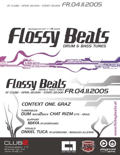 added by asbach | | 04.11. | FLOSSY BEATS | Club2, Braunau |