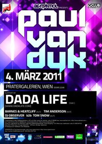 Drei Tage nach dem offiziellen Beginn der wohl schönsten Jahreszeit startet Beatpatrol mit einer Clubshow der besonderen Art in den Frühling. Der Deutsche PAUL VAN DYK und das schwedische Duo DADA LIFE reisen mit freshen Beats im Gepäck in die Bundeshauptstadt, um die Pratergalerien zum Beben zu bringen.