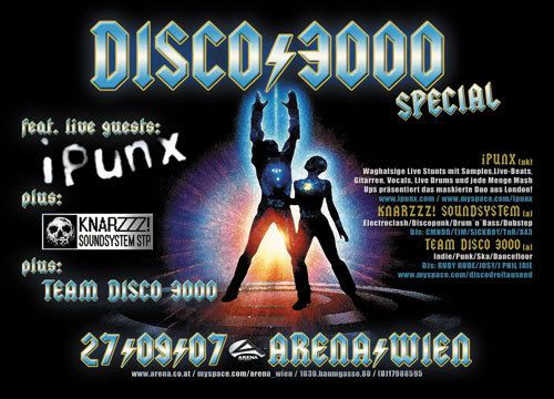 Die Arena Wien verlost über myspace 5x2 Karten für die heutige Disco 3000 mit iPunx & Knarzzz! Soundsystem.