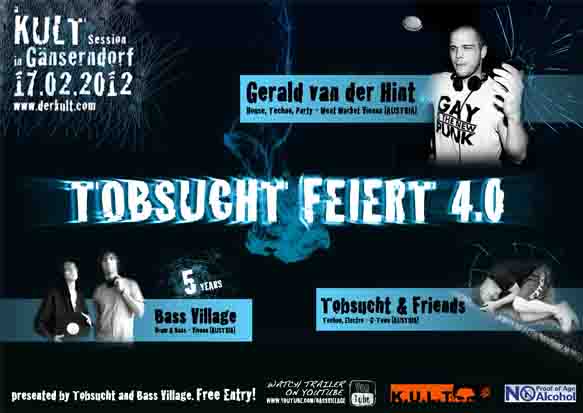 added by afterlife | | 17.02. | Tobsucht Feiert | K.U.L.T., Gänserndorf |