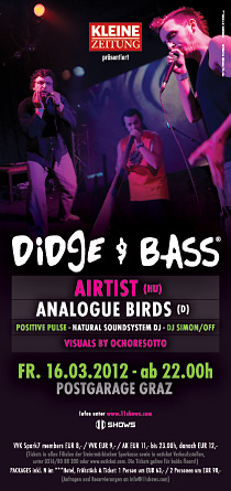 Acts: - Analogue birds (D) - Airtist (HU) - Positive Pulse (SLO) DJs: - Natural Soundsystem DJ (AUT) - DJ Simon/Off (AUT) Visuals: OchoReSotto.com