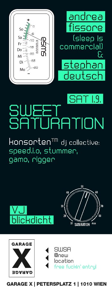 added by leandre | | 01.09. | SweetSaturation | Garage X, Petersplatz 1, 1010 Wien, Wien |