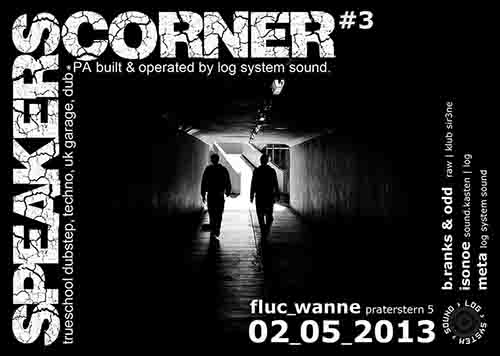 lineup: b.ranks & odd (RAW | KLUB SIR3NE) meta (LOG SYSTEM SOUND) isonoe (SOUND.KASTEN | LOG) soundsystem built and operated by log system sound http://www.facebook.com/speakerscornerfluc