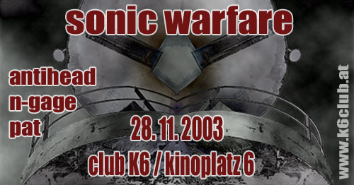 added by aquapocus | | 28.11. | sonic warfare | club K6 / kinoplatz 6 , klagenfurt 9020 |