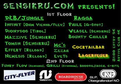 added by mazzive | | 31.08. | SensiKru | The Cave, Ausstellungstraße, STP |