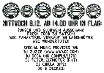 mi, 8.12. (feiertag!): ab 14 uhr geöffnet, es werden rechtzeitig vor weihnachten fanartikel vom ladenhüter feilgeboten!