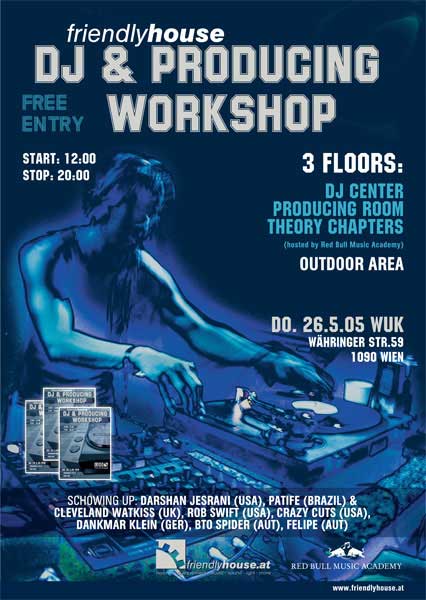 Am 26.5.05 findet zum 4.Mal der Friendly House DJ & Producing Workshop statt - dieses Jahr im WUK.