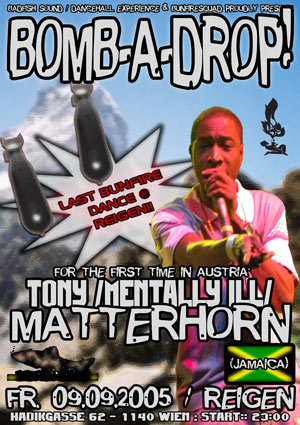 Am 09.09. kann man selber Zeuge von Tony’s unterschiedlichen Charakteren werden. Zum ersten Mal wird Matterhorn nach Wien kommen und dem Reigen Publikum zeigen was „Real Entertainment“ bedeutet. Seine Erfahrung und Berühmtheit basieren auf einem der legendärsten Clash-Sound aus den U.S.A., King Addies, bevor er sich mit seinem Co-Selector Baby Face zusammen tat und als Team namenhafte Sounds wie Black Kat, Bass Odyssey und Jaro’s Ricky Trooper dem Erdboden gleich zu machen.