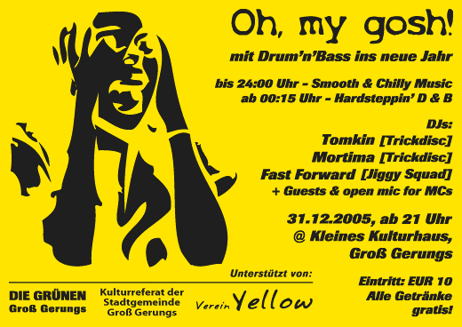 added by Marcc | | 31.12. | OH MY GOSH!!! | Kleines Kulturhaus, Gr. Gerungs, NÖ |