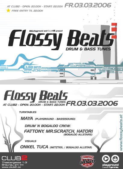 added by asbach | | 03.03. | FLOSSY BEATS | Club2, Braunau / Austria / Europe |
