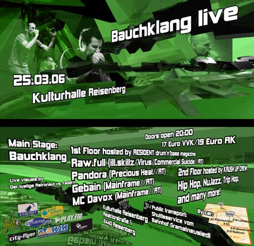 added by astronaut | | 25.03. | BAUCHKLANG live | Kulturhalle Reisenberg, 2440 Reisenberg |