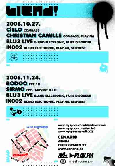 bringing together beats of many kinds, blu 3 and IK002 are starting to take over your fridays once a month. playing everything from hip-hop, nu skool breaks and everything between, the two residents and their - local and international - guests are gonna rock vienna's new club, cenario. cenario (tiefer graben 22, 1010 vienna) and blend electronic are waiting for you with free entry, nice-priced drinks and - last but not least - groovy, techy, experimental, deep and funky beats!