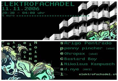 Die zweite Veranstaltung des Elektrofachadels widmet sich der lokalen Szene - von Dubstep ueber Breakcore bis hin zur Noise-Live-Performance ist alles dabei und herumexperimentiert wird ganz nach dem Motto: