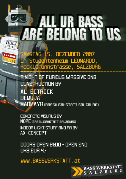 added by basswerkstatt | | 15.12. | basswerkstatt | Studentenheim LEONARDO, Salzburg |