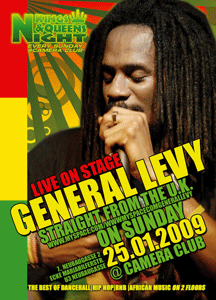 LIVE ON STAGE: GENERAL LEVY at Kings & Queens Night Camera Club, 7., Neubaugasse 2 Dj's: Miss T., SickChick, Touch Adm: 10€<24:00>15€ Gates: 22:00