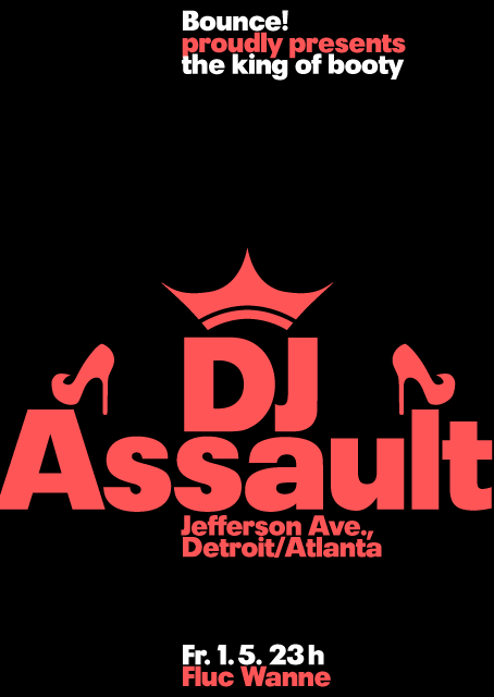 The king of the booty, DJ Assault’s name has become synonymous with the low down get dumb and ghetto tech bass scene coming from Detroit. Famed for it’s techno output, DJ Assault took the blue print for Detroit’s electronic musical heritage and twisted it to become the foul mouthed and funked up bastard son that is booty bass. Alongside DJ Funk and DJ Godfather, Craig Adams has toured the world making asses shake and speakers quake with his fast and frenzied cut up style. Combining hip hop skills and bravado with the subtle nuances of techno is a combination that has rocked dancefloors internationally and continues to set clubs off with more energy in one night than most DJs can muster in an entire year.