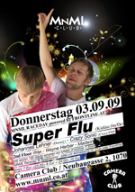 Am 3. September 2009 starten wir mit dem Club MNML Race Day powered by FRONTLINE ins neue Semester!!! Mit dabei ist das Berliner DJ-Duo Super Flu aus Berlin (kiddaz.fm)!!! Der Support an den Decks kommt vom FLEX Resident Crazy Sonic (fsp) & Johannes Lehner (doeasy records)!!! 7€ < 23:00 > 8€ <00:00 > 10€ !!!