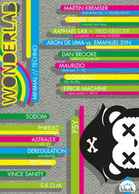 Am 24. september geht die Wonderlab in die 2te runde!!! Psy vs. minimal ist diesmal mit 2 dicken floors am start und ihr könnt euch wieder auf sound a la deluxe freun!! Alle sind herzlich eingeladen sich im Wunderlabor zu vergnügen!!! see you there :)