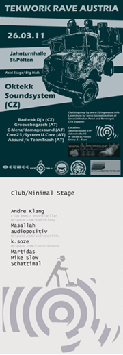 added by core23 | | 26.03. | Tekwork Rave | Jahnturnhalle, St.Pölten |